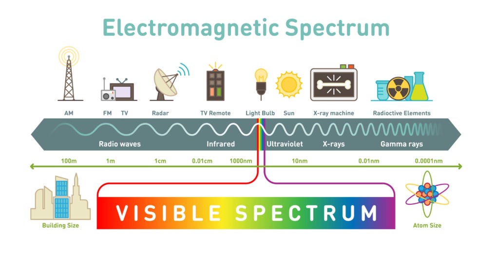 Basically, light comes in a full spectrum of colors, most of which is invisible to human eyes: