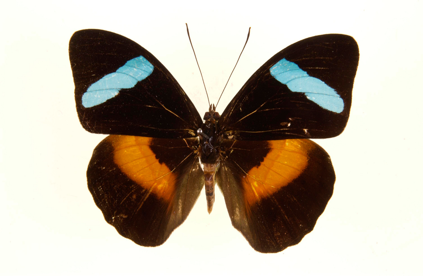 One of the few organisms to actually create blue pigment is the obrina olivewing butterfly, which has small blue bands on its wings. I can’t find any information on why this particular insect creates blue the old-fashioned way, so if any of you have any insight, I’d love to hear about it.